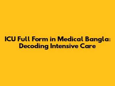ICU Full Form In Medical Bangla: Everything You Need To Know
