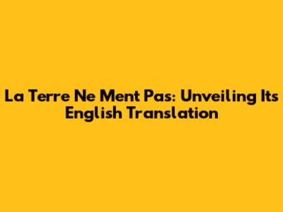 Have you ever heard the French phrase La Terre Ne Ment Pas and wondered what it means? Well, guys, you're in the right place! This article is dedicated to unraveling the meaning of this profound statement and exploring its English translation, along with its cultural significance. Whether you're a language enthusiast, a student of French, or simply someone curious about different cultures, get ready to dive deep into the essence of La Terre Ne Ment Pas.
